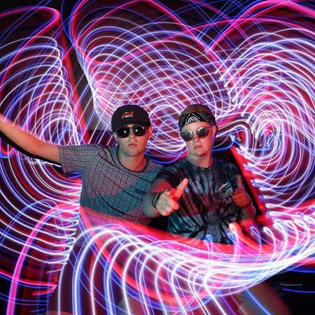 Die Gäste befinden sich in einem abgedunkelten Raum, in dem die Kamera ein Langzeitbelichtungsbild aufnimmt und unser Team Lichtmalwerkzeuge verwendet, um coole Effekte zu erzeugen.