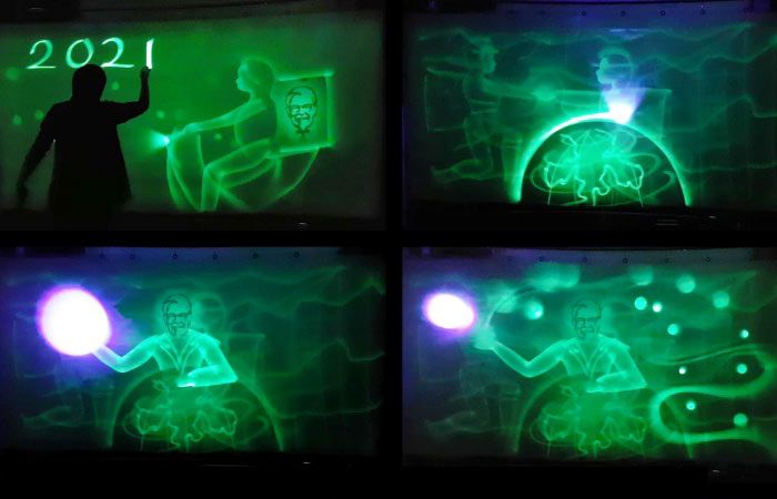 Seine Live-Lichtzeichnungsshows wurden zuvor von Samsung und KFC gebucht und sind beliebt für Preisverleihungen sowie Marken- oder Produktpräsentationen.