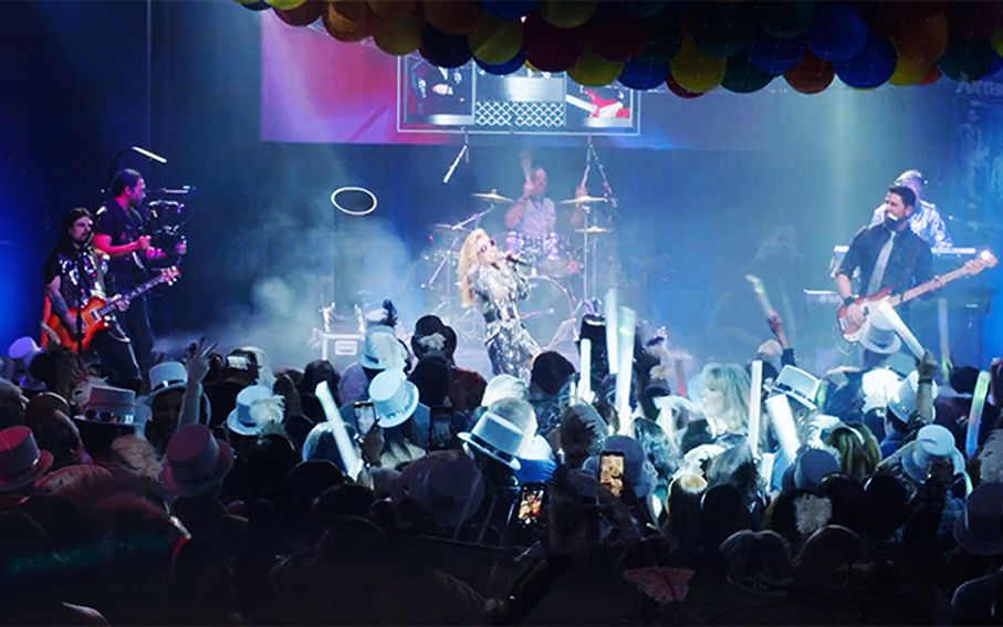 Die Band begeistert das Publikum mit Spaß, thematischen Sets und einer energiegeladenen Bühnenpräsenz, die jede Veranstaltung in eine Party verwandelt.