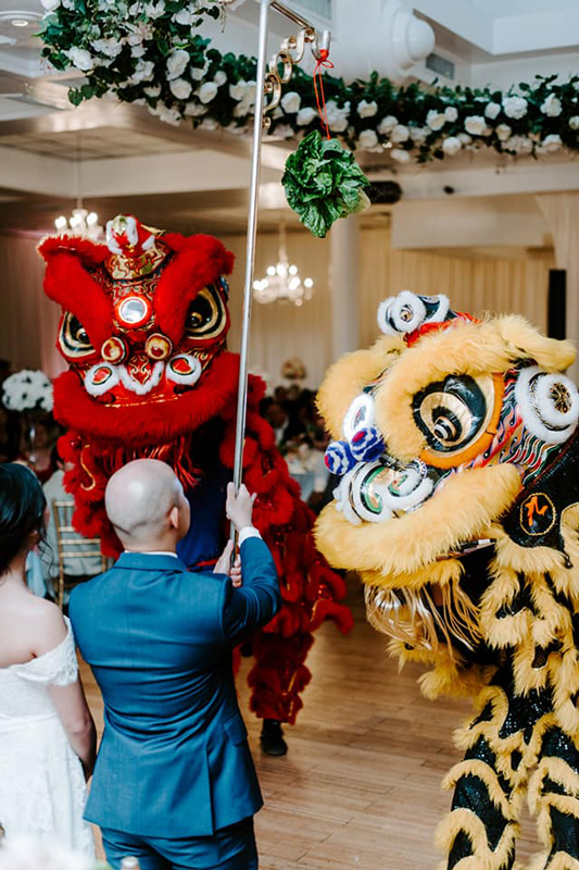 Chinesische Löwen können sowohl für Bühnen- als auch für Streifenauftritte gebucht werden und freuen sich, mit Ihren Gästen für Fotos zu posieren.