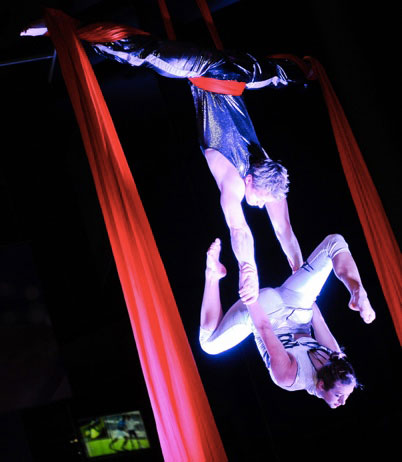 Dieses unglaubliche Luftakrobatik-Team bietet eine Vielzahl von Auftritten als Solo-Künstler und Teams an Tüchern und Reifen. Alle ihre Shows können an Ihre Veranstaltungsbedürfnisse angepasst werden, einschließlich Choreografie, Soundtrack, Kostümen und farbigen Geräten. Sie können sowohl große Team-Auftritte in Arenen als auch intime, elegante Solo-Shows bieten und werden das Publikum jeden Alters beeindrucken.