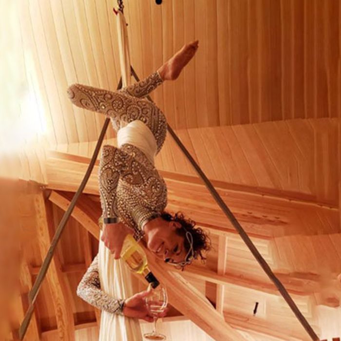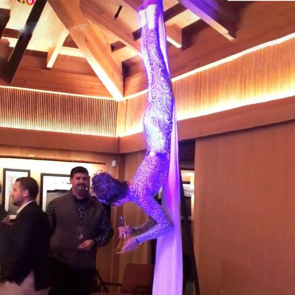 Suchen Sie nach einer anderen Möglichkeit, Ihre Lieblingsgetränke zu servieren? Suchen Sie nicht weiter, denn wir haben das perfekte Getränke-Event-Entertainment für Sie. Ein einzigartiger, anspruchsvoller und unterhaltsamer Weg, Champagner zu servieren: Unsere Luftakrobatin hängt kopfüber an ihren Luftseiden und bietet Ihren Gästen Getränke an. Diese interaktive Künstlerin wird Ihrer Veranstaltung eine unerwartete und magische Note verleihen und bietet eine fantastische Fotogelegenheit. Unsere Luftgastgeberin wird über Ihren Gästen schweben und so für einen großartigen Gesprächseinstieg sorgen, während sie verschiedene Getränke serviert. Wählen Sie Ihre Lieblingsgetränke: Wein, Champagner, Cocktails oder ein beliebiges anderes Getränk Ihrer Wahl.