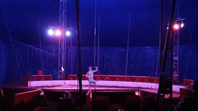 Unsere Zirkuskünstlerin führt eine Rock-Style-Tanztrapeze-Nummer sowie andere atemberaubende Luftshows auf einem Luftreifen und Luftseide auf.