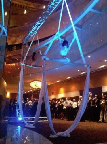 Wir bieten einige der besten und einzigartigsten Luftakrobaten der Welt, die bemerkenswerte Stärke, extreme Flexibilität und Kreativität kombinieren, um jedem Event eine spektakuläre Note zu verleihen. Diese vielseitigen Akrobaten bieten einzigartige Unterhaltung mit definitivem "Wow-Faktor" und können mit einer Vielzahl von Geräten auftreten, darunter Trapez, Tücher, Reifen und Luftwürfel.