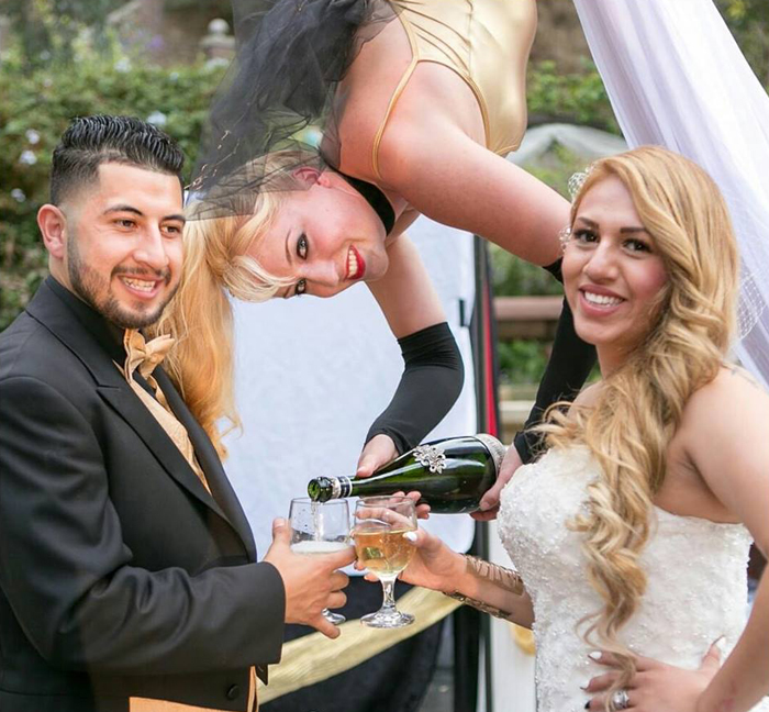 Bietet ein luxuriöses interaktives Getränkeerlebnis zwischen Ihren Gästen und einer glamourösen Luftakrobatin