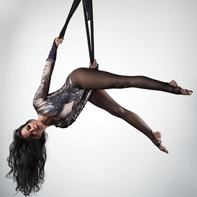 Als Luftakrobatin, die auf Schleifen performt, verbindet sie rohe Kraft mit raffinierter Anmut und formt kühne Bewegungen zu unvergesslichen, skulpturalen Momenten.