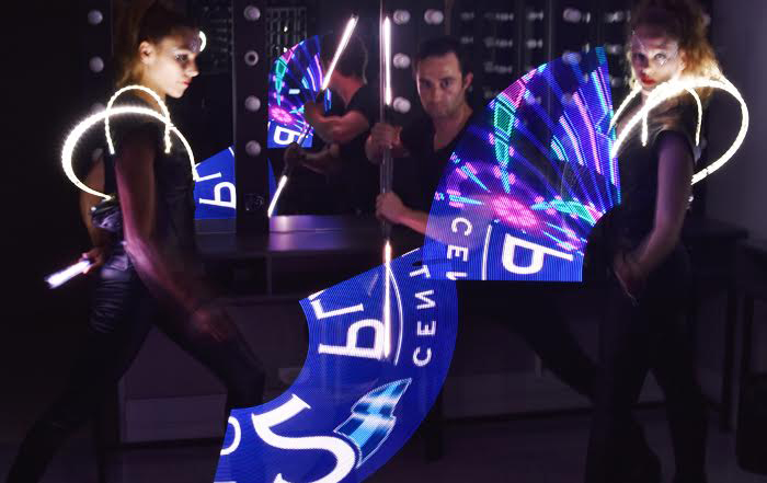 Visuell beeindruckende LED-Show verwendet Poi-Technologie, um Ihr Logo, Ihre Marke oder Ihre Botschaft auf originelle Weise zu präsentieren.