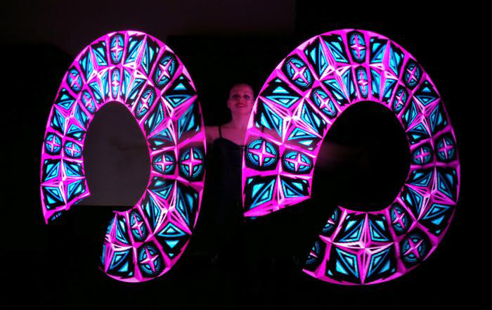 Buchen Sie ein, zwei oder bis zu drei LED-Poi-Tänzer, je nach Bedarf und verfügbarem Platz. Shows besonders geeignet für dunkle Umgebungen.