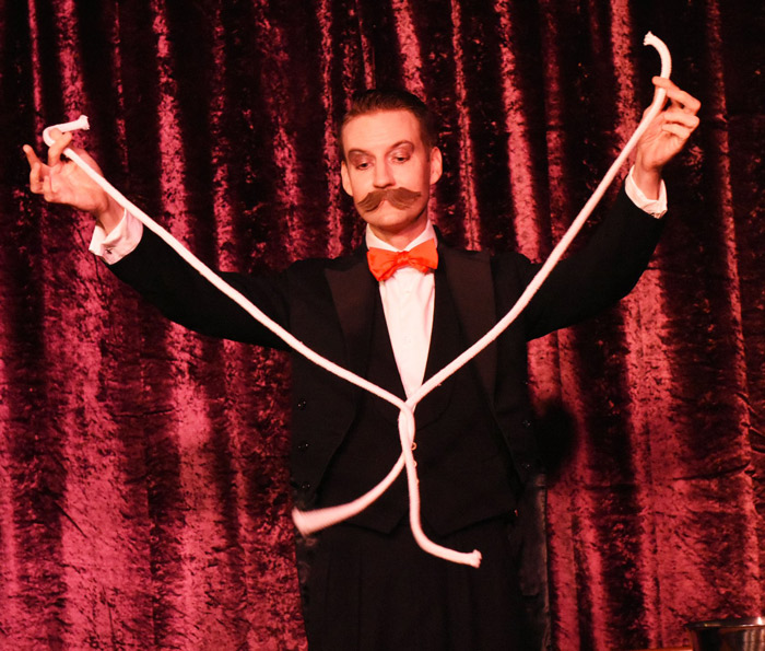 Hält Ihre Gäste mit faszinierenden magischen Einlagen und Publikumsinteraktionen engagiert, unterhalten und aufmerksam.