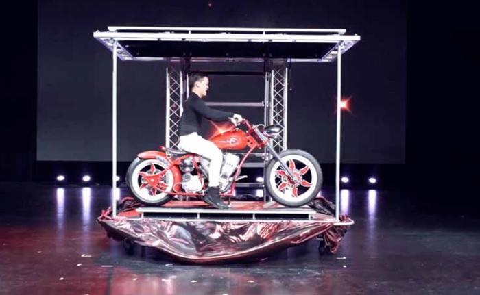 - Motorradauftritt: Ein klassischer 360-Grad-Motorrad-Illusionsakt, der von Magiern auf der ganzen Welt verwendet wird.