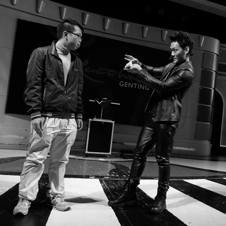 - Unsichtbare Berührung: Ein Zauberakt, bei dem zwei Zuschauer Berührungen auf ihren Schultern spüren, während der malaysische Magier weit entfernt ist.