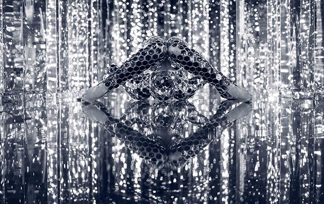 Menschlicher Discokugel-Kontorsionist