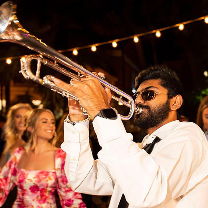 Diese 6-köpfige Band spielt ein Repertoire, das alle Hits von Louis Armstrong bis Bad Bunny und einige originale Klassiker abdeckt, um sicherzustellen, dass die Party in Gang kommt.