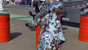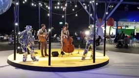 Die ultimative spiegelnde Roaming-Unterhaltung. Die spiegelnden Kostüme des Duos reflektieren Umgebungslicht und schaffen eine großartige Ästhetik.