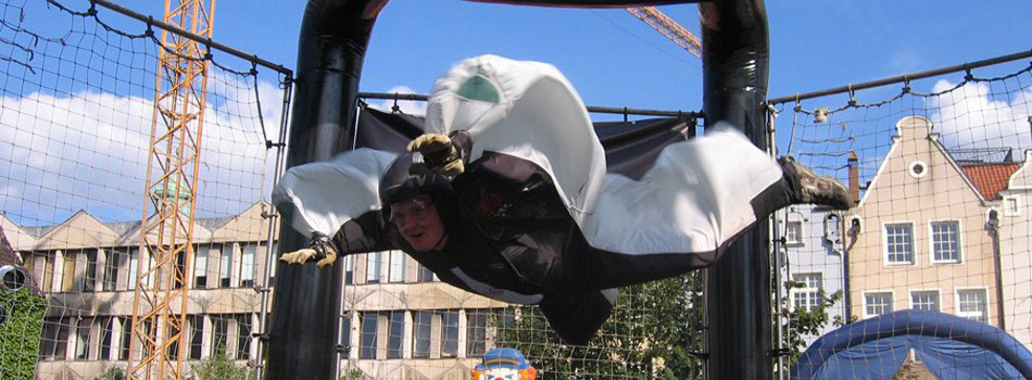Ein Luftstrom von mehr als 180 km/h hebt den Teilnehmer "gewichtslos" in die Luft, unter Aufsicht einer verantwortlichen Person. Bodyflying bietet stundenlangen Spaß beim simulierten Fallschirmspringen.
