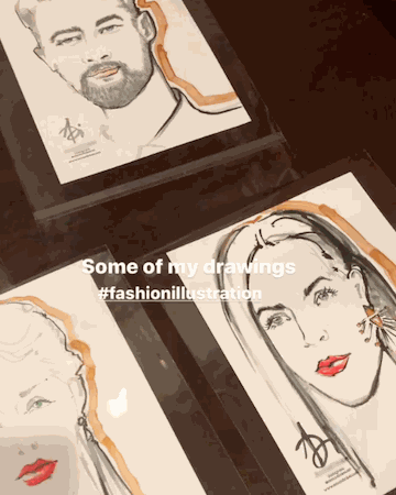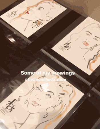 Diese Modeillustratorin, die sich auf Couture-Designs spezialisiert hat, erstellt elegante Porträts und Ganzkörperskizzen von Gästen und fängt ihren Gesamtlook ein.