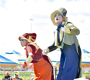 Die herumlaufende Darbietung unserer fantastischen Narren ist energiegeladen, bunt und sorgt dafür, dass Ihre Gäste eine gute Zeit haben. Es ist die Art von interaktiver Unterhaltung, die ein Lächeln auf die Gesichter der Menschen zaubert. Über der Menge aufragend, gehen die Stelzenläufer, tanzen und bringen Freude in Ihre Veranstaltung. Immer ein Hit bei Kindern ermutigen sie die Kleinen, zwischen ihren langen Beinen hindurchzugehen. Witze und Streiche sind Teil der herumlaufenden Darbietung, immer im Spiel mit den Zuschauern und dafür sorgend, dass alle eine gute Zeit haben.