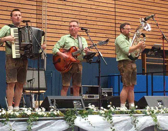 Mit einem breiten Repertoire an lebhaften Oberkrainer Volksliedern präsentiert unsere deutsche Band 5 talentierte Musiker und viel Charisma. Garantiert, um die Gäste in Tanzstimmung zu bringen, sind unsere interaktiven Live-Performer ideal für jede Veranstaltung, die eine fröhliche Atmosphäre schaffen möchte.