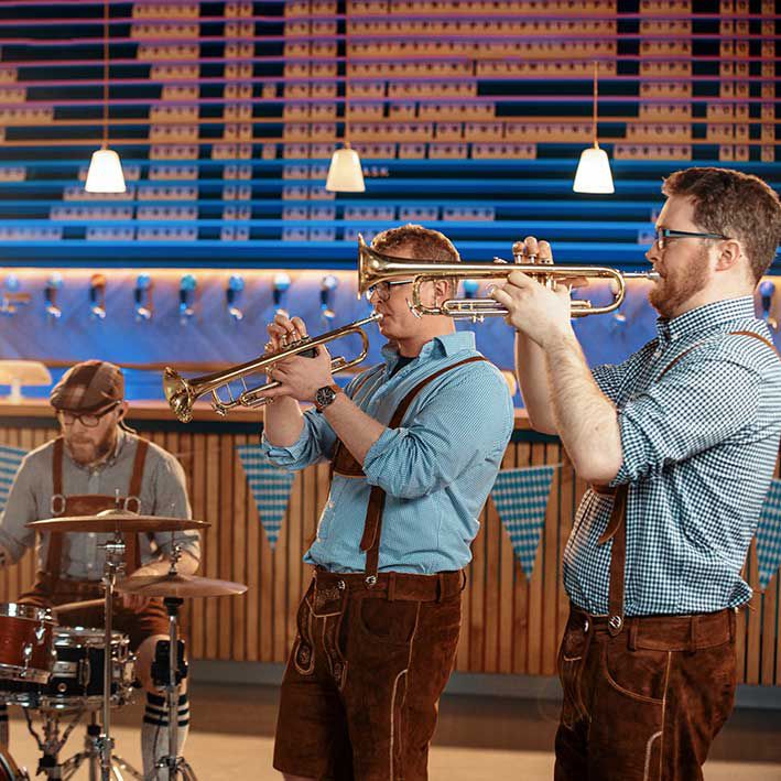 Gekleidet in echter deutscher Kleidung wird unsere talentierte Oompah-Band Ihrem Event ein authentisches Gefühl verleihen.