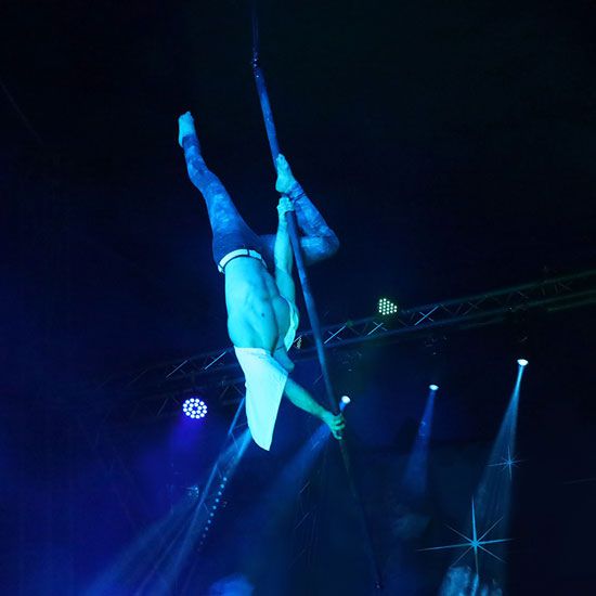 Eine elegante und anmutige Show, die sicherlich jeden verblüffen wird, hat dieser Luftakrobat Flexibilität, Stärke und Kontrolle wie kein anderer!