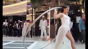 Unsere erfahrene Zirkusartistin ist ein professioneller Cyr-Rad-Künstler, die auf Kreuzfahrtschiffen und in Bühnenshows aufgetreten ist.