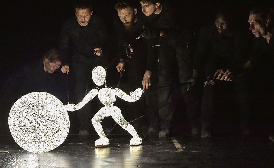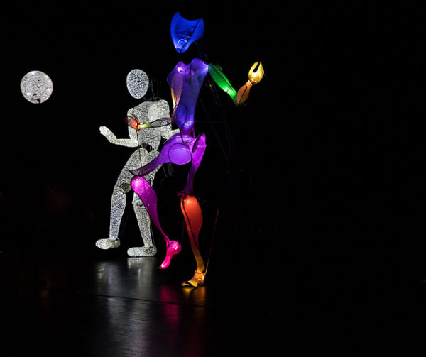 Von einem Team aus 5 erfahrenen und professionellen Puppenspielern gehandhabt und zum Leben erweckt, erwacht unser einzigartiger Roaming-Charakter mit seinem flexiblen, transparenten Körper aus miteinander verwobenen Fasern zum Leben und bewegt sich in perfekter Harmonie mit einem magischen Soundtrack, der von der Musik der westafrikanischen Harfe - Kora - bereitgestellt wird.