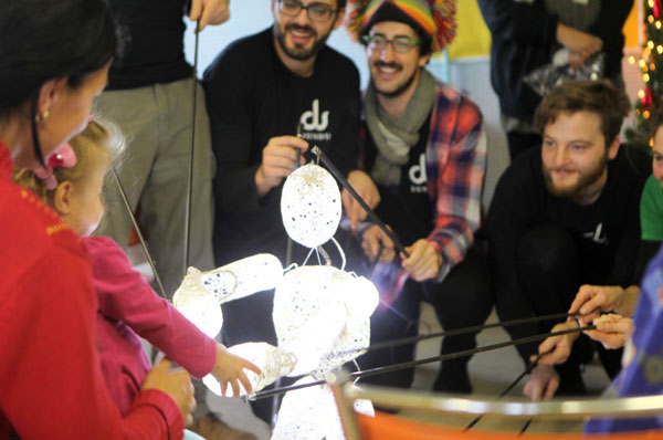 Unsere Riesen-LED-Puppe wurde geschaffen, um das Ideal zu verkörpern, dass das Ganze mehr ist als die Summe seiner Teile. Jede Bewegung ist das Ergebnis des gemeinsamen Moments im "Hier und Jetzt" und steht für vertrauensvolle Zusammenarbeit, die auf Inklusion und Kooperation beruht. Unsere Puppe glaubt, dass dies etwas ist, das wir auf globaler Ebene anwenden sollten.