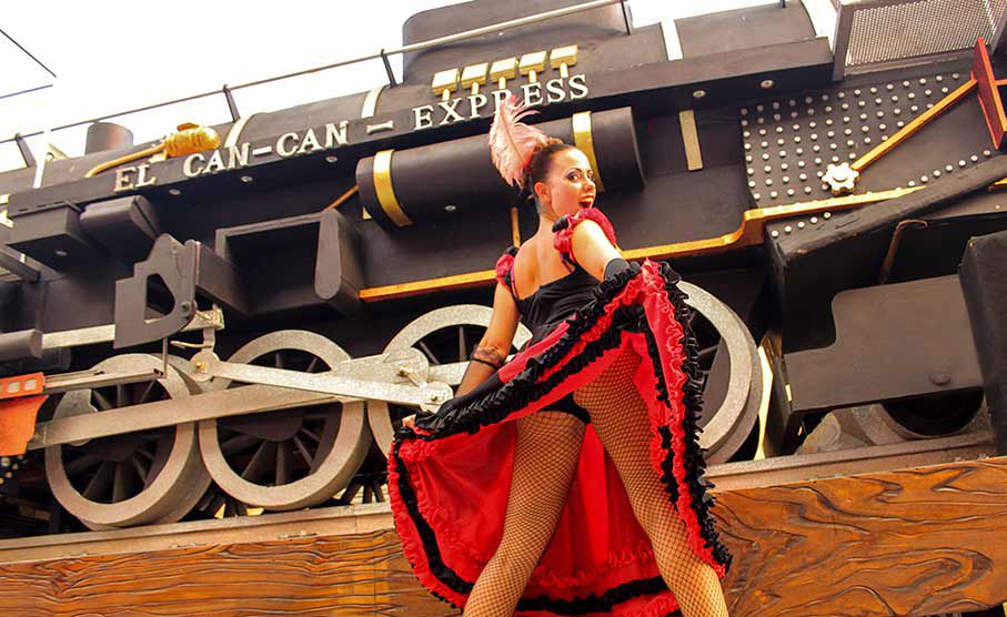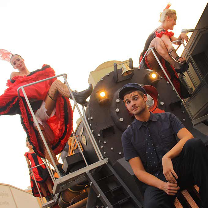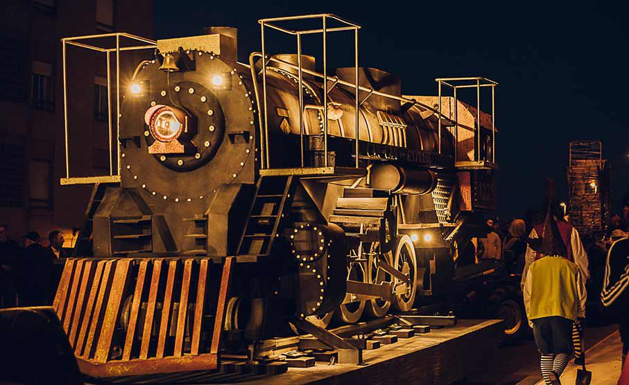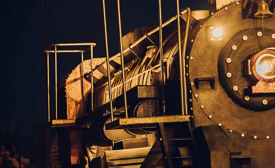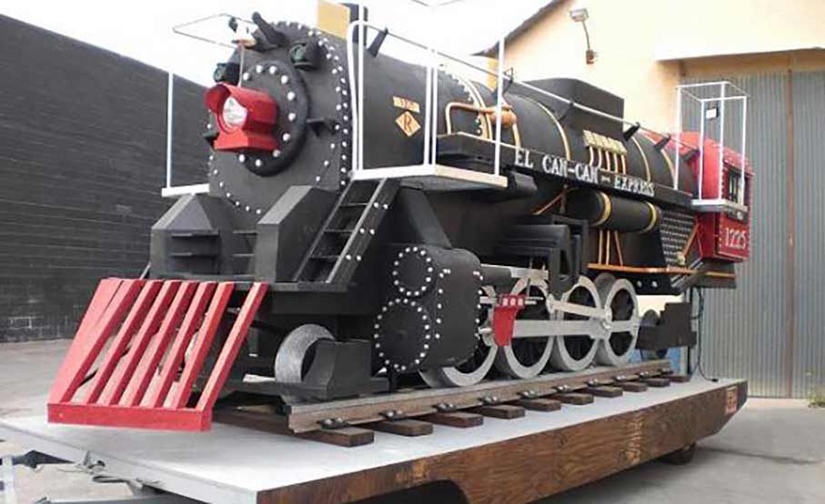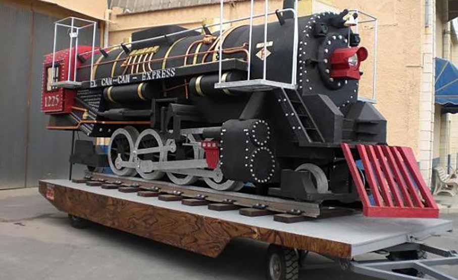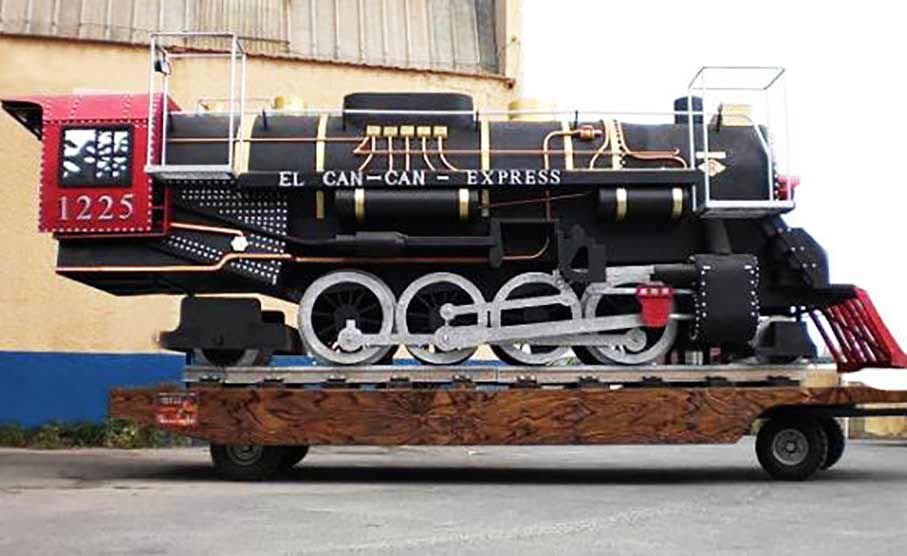 Mit raffinierter Ingenieurskunst wird diese bewegliche Lokomotivskulptur sicherlich die Szene bei Ihrer Veranstaltung setzen und als beeindruckende wandernde Bühne fungieren.