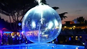 Die anmutigen Bewegungen des Luftakrobaten innerhalb der Blase verleihen Eleganz und Drama und machen sie zum perfekten Mittelpunkt für jeden besonderen Anlass.