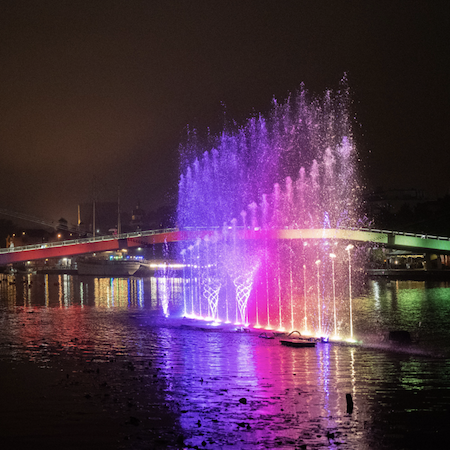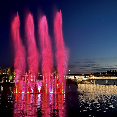 Das Team kann spektakuläre Tanzbrunnen mit vorhandenen Programmen oder vollständig individuell entwickelten Sequenzen produzieren, die speziell für Ihre Veranstaltung entworfen wurden.