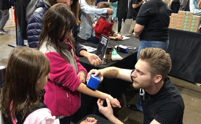 Sehr ansprechender und interaktiver Service kann sich frei auf Ihrer Veranstaltung bewegen und die Gäste tätowieren.