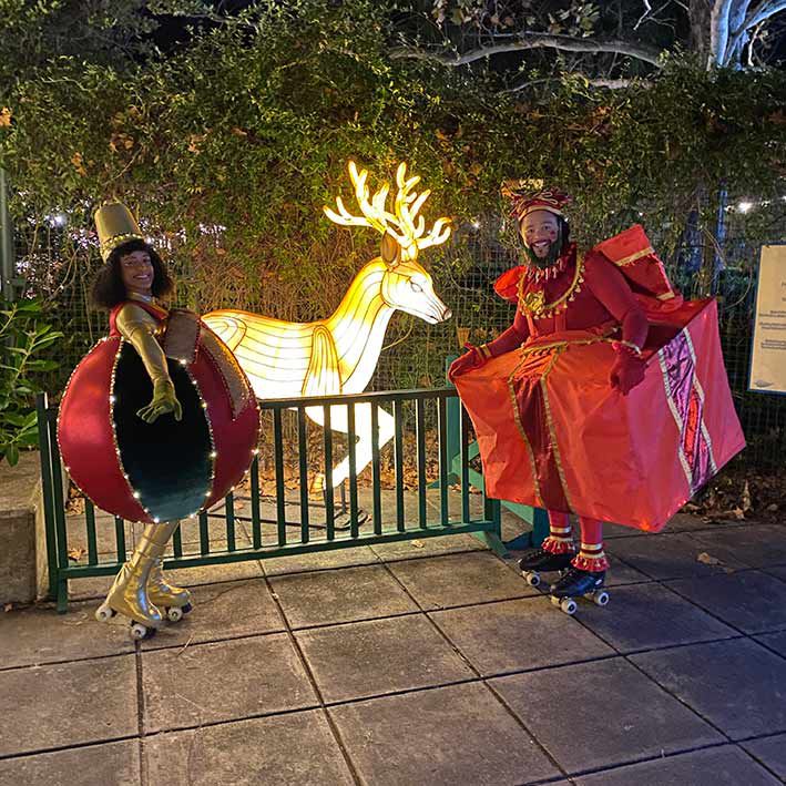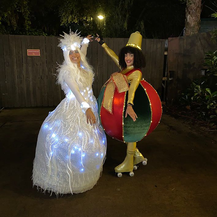 Dieser freundliche, herumlaufende Unterhalter interagiert mühelos mit den Gästen, posiert für Fotos, führt angenehme Gespräche und zeigt beeindruckende Rollschuhtricks.
