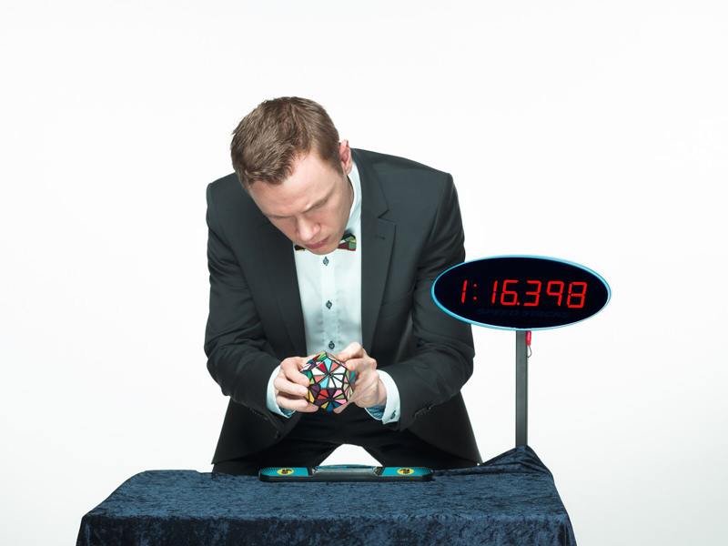Er bietet auch Bühnenshows an und hat zusammen mit einem Mentalisten eine Performance entwickelt, die das Sportart Speedcubing dem Publikum vorstellt. Auch perfekt für Produktpräsentationen und andere Firmenveranstaltungen kann dieser Rubik's Cube-Künstler kreative Ideen entwickeln, um Ihre Party unvergesslich zu machen. Von dem Versuch, neue Rekorde aufzustellen, bis hin zum Bau von Mosaiken mit Rubik's Cubes sind die Möglichkeiten, die er bietet, endlos!