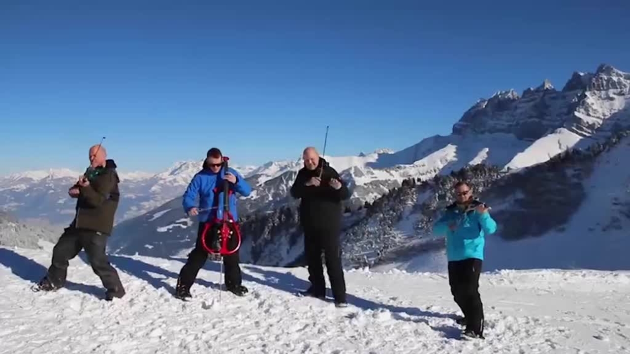 - Ravel's Bolero - erstaunliche Darbietung musikalischer Gymnastik, bei der die gesamte Gruppe gleichzeitig auf einem Cello spielt