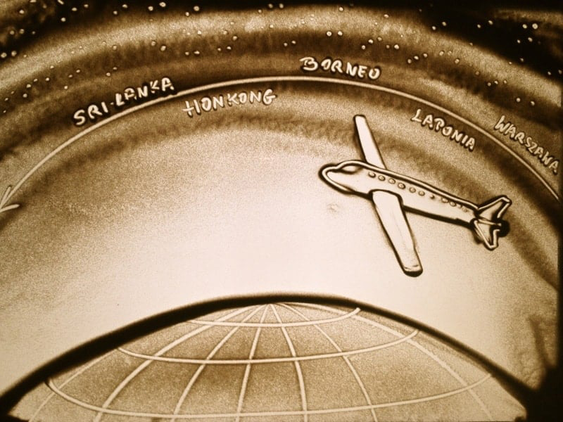 Sandkunst für Veranstaltungen kombiniert einige Elemente der traditionellen Animation mit Zeichnen, um eine Geschichte durch eine Reihe von Szenen zu erzählen. Dieser Event-Sandkünstler "zeichnet" mit Sand direkt vor den Augen Ihres Publikums und mit großer Geschwindigkeit, wodurch die Illusion von Bewegung entsteht.