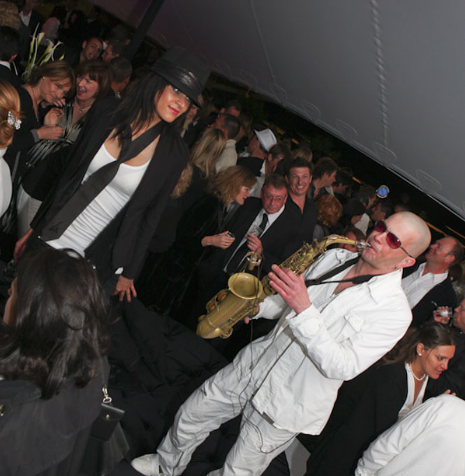 Dieser Saxophonmusiker ist äußerst beliebt bei der Jet Set-Szene sowie bei Promi-Partys!