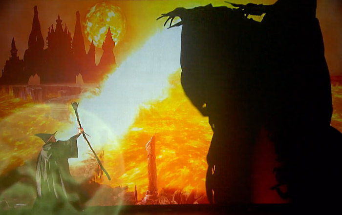 Bahnbrechende und einfallsreiche 3D-Schattenshow, die interaktives Video-Mapping und Projektions-Mapping für ein multidimensionales Erlebnis integriert.