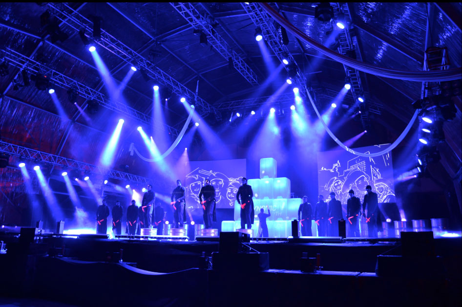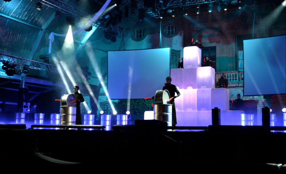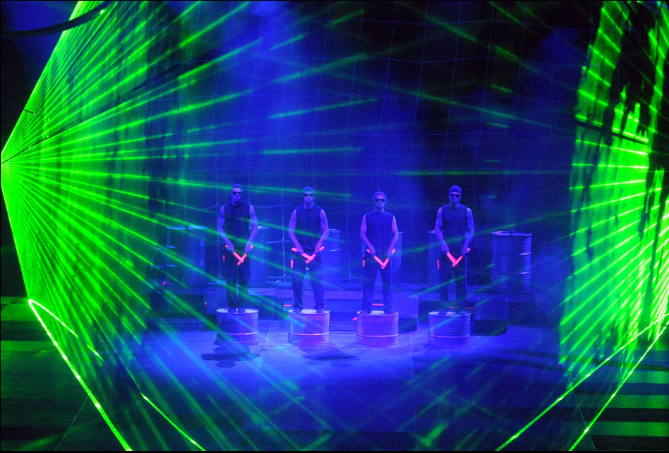 Die Show präsentiert herausragende Bühnenbilder aus Licht und Schatten, während jeder Künstler in futuristischen Kostümen gekleidet ist, komplett mit computergesteuertem 3D-Lichtdesign, das Rhythmus und Percussion visualisiert.