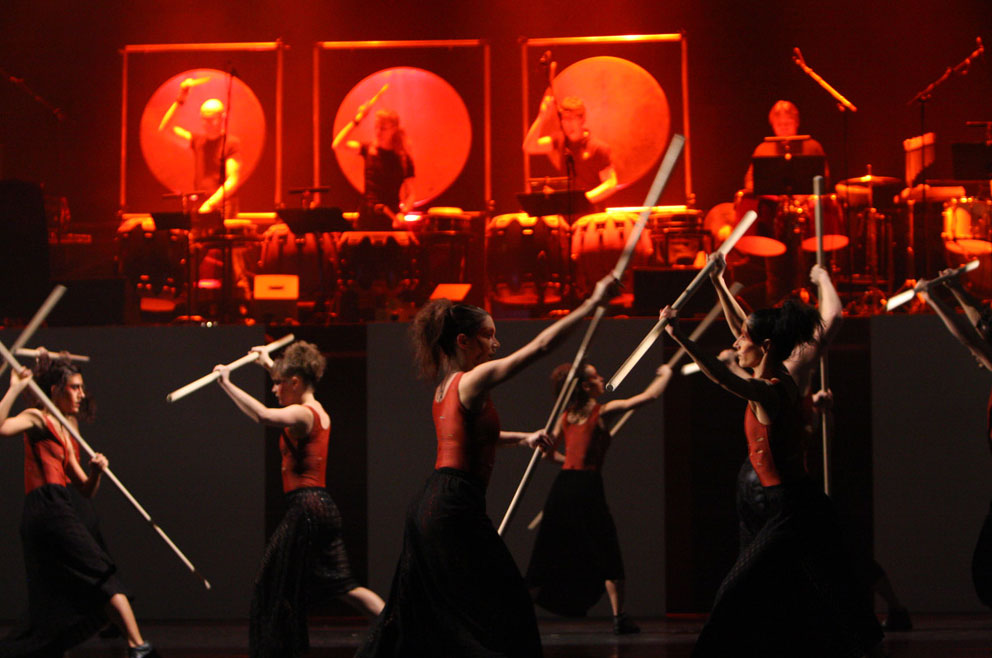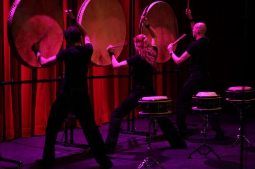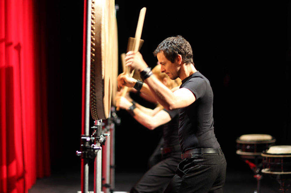 Konzentrierte Schlagzeug-Performance mit drei beeindruckenden Schlagzeugen mit einem Durchmesser von 1 Meter. Kraftvolle Rhythmen, perfekt choreografiert, werden einen bleibenden Eindruck hinterlassen.
