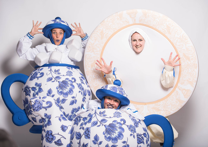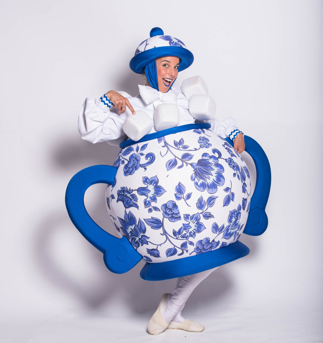 Diese Walkabout-Unterhaltung umfasst atemberaubende, farbenfrohe Kostümfiguren, darunter eine riesige verzauberte lebende Teekanne, Teetasse und Teller, die sich durch die Veranstaltung tanzen, hüpfen und springen werden. Beauty und ihr blumiges gelbes Ballkleid werden in diesem Umzug im Mittelpunkt stehen, neben dem Beast, das neben ihr aufragt mit seinem übergroßen passenden dunkelblauen und gelben Anzug, übergroßem Kopf und Manschettenknöpfen. Zusätzlich zu den Hauptattraktionen gibt es eine magische lebende Rose mit einem atemberaubenden Blumenkopfschmuck sowie einen lustigen und energiegeladenen Hofnarren, um die Menge weiter zu begeistern.