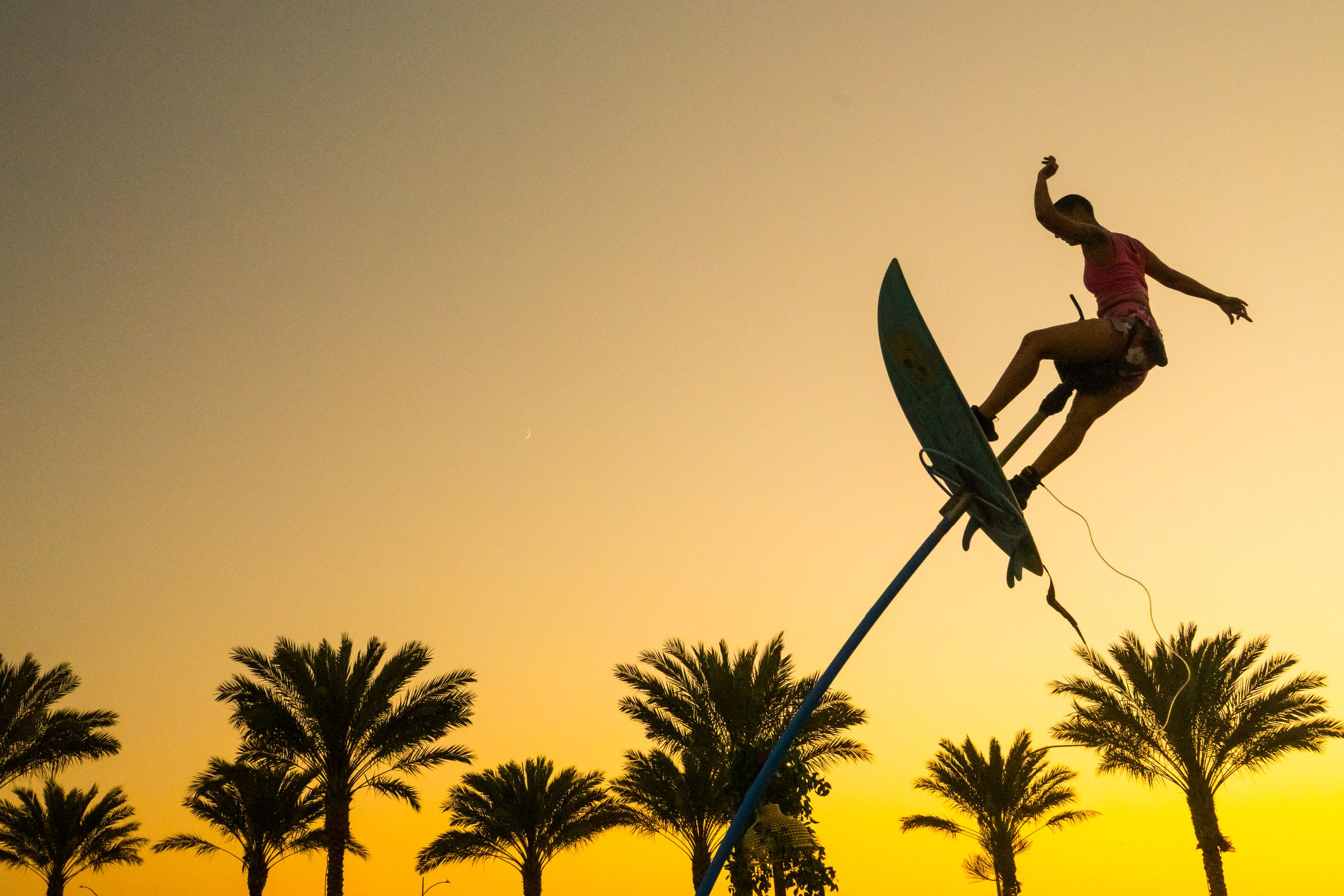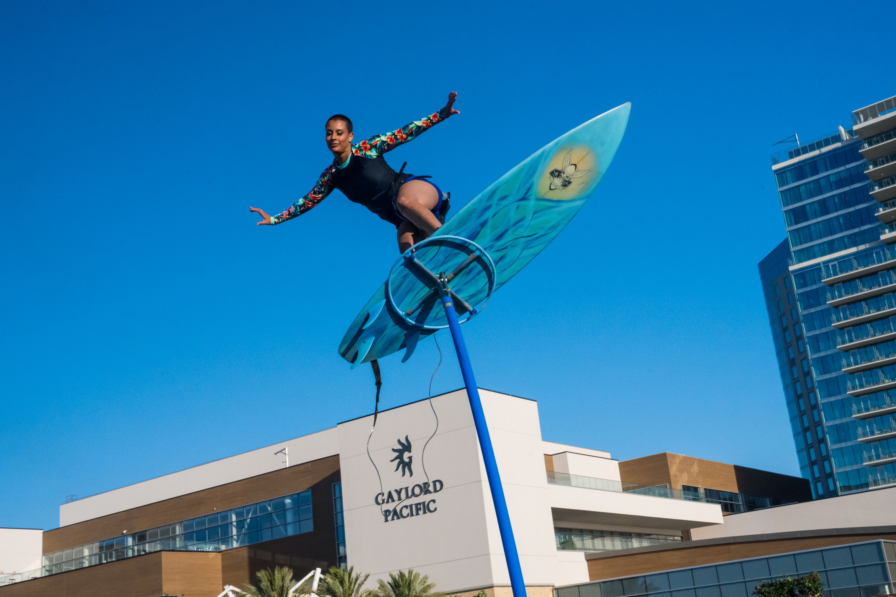 Verbessern Sie Outdoor- und Themenveranstaltungen von Strandnächten bis zu Hawaii-Partys mit einer filmreifen, surf-inspirierten Schwungmast-Nummer, die die Blicke der Gäste auf sich zieht.