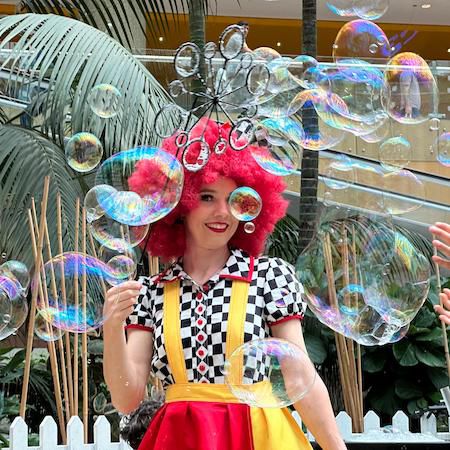 Diese talentierte und erfahrene Seifenblasenkünstlerin bietet interaktive Unterhaltung für Kinder, die die ganze Familie genießen kann.