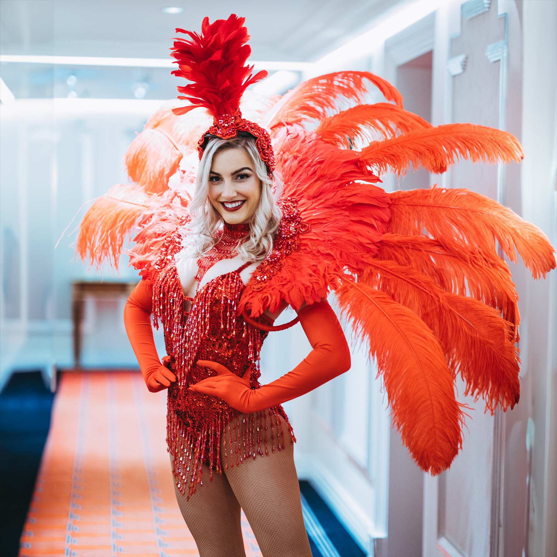 Engagieren Sie Showgirls im Las Vegas-Stil für Veranstaltungen in New York City. Sowohl weibliche als auch männliche Darsteller verfügbar