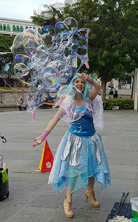 Ein bezaubernder Bubble-Performer und Kinderunterhalter in Singapur, dessen lebendige Kostüme und Charaktere bei Zuschauern jeden Alters Anklang finden. Sie tritt als Prinzessinnen, Feen, Märchenfiguren und auch elegantere Charaktere für erwachsene Zuschauer und Veranstaltungen auf.