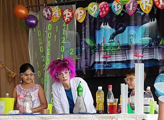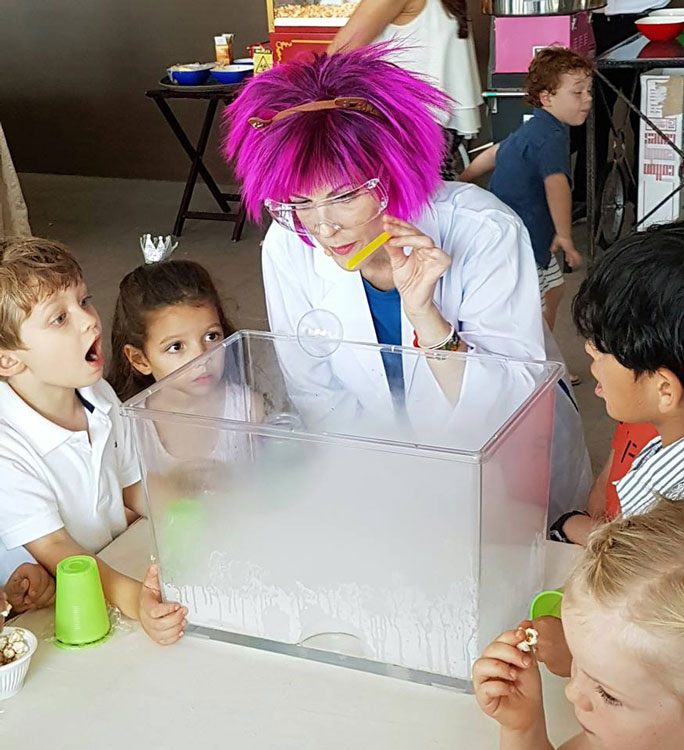 Neben Bühnenshows kann unser Bubble-Performer auch Workshops leiten, bei denen Ihre Gäste selbst riesige Seifenblasen erstellen können! Unser thematischer Bubble-Performer kann 6 Fuß große Mega-Seifenblasen sowie eine 9 Fuß große Drachen-Seifenblase erzeugen!