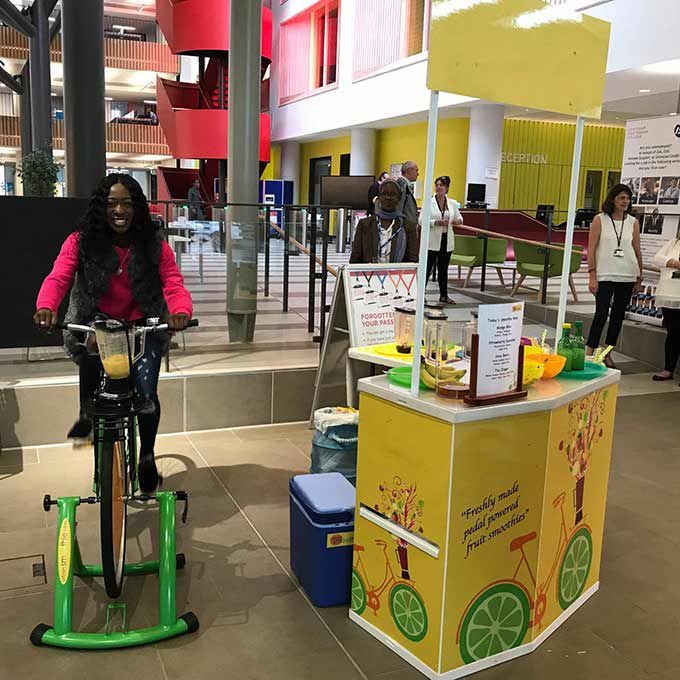 Mit Sitz in Cambridge sind unsere individualisierbaren Smoothie-Bikes verfügbar, um gesundes Leben bei Veranstaltungen im ganzen Vereinigten Königreich zu fördern.