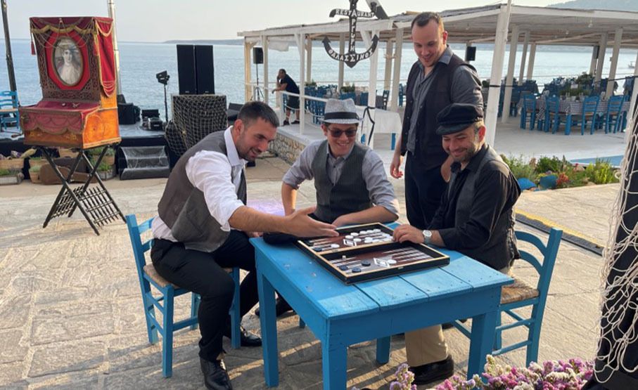 Einschließlich Schwammhändler, Komboloi-Verkäufer, Wahrsager und Backgammon-Spieler, die jeweils ein einzigartiges und interaktives Erlebnis für Ihre Gäste bieten.