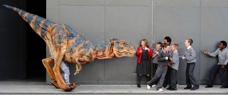 Aufgrund des Erfolgs der Jurassic Park-Filmreihe und der zeitlosen Faszination von Kindern für diese prähistorischen Bestien ist dieser herumlaufende Dinosaurier-Act bei internationalen Zuschauern äußerst beliebt.