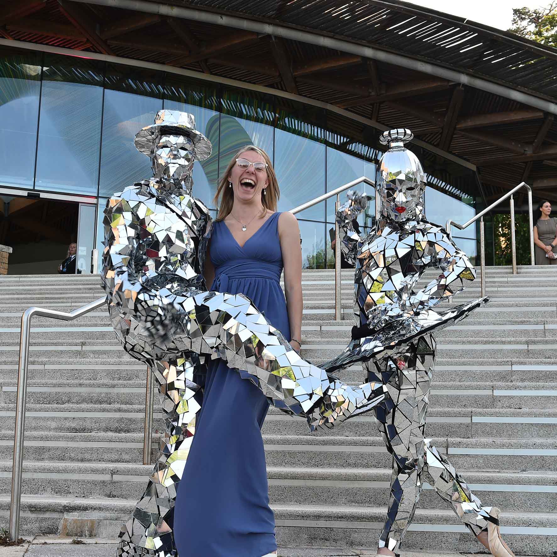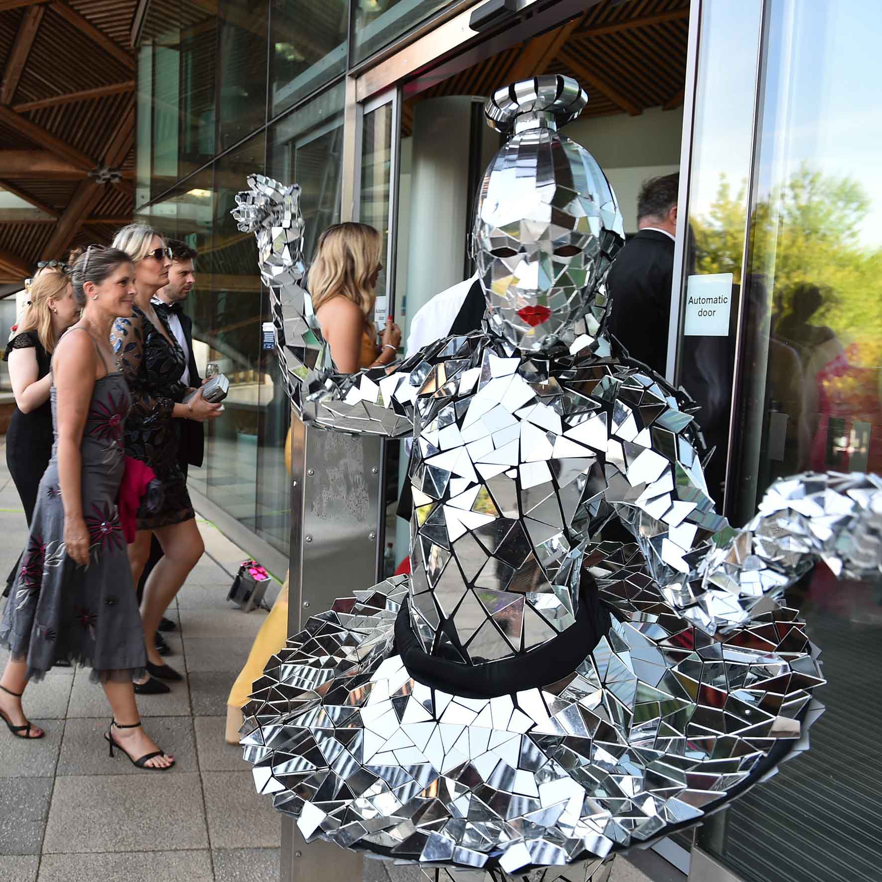 Eine auffällige Option für Empfänge und Mix-and-Mingle-Veranstaltungen sind unsere schimmernden, anmutigen Spiegelball-Ballerinas, die weltweit für Veranstaltungen verfügbar sind.