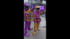 Diese Mix-and-Mingle-Künstler sind mit Tausenden von lila und goldenen Spiegeln bedeckt und verleihen luxuriösen Rennveranstaltungen eine funky Atmosphäre.